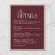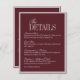 Cartão De Informações Elegant Script Burgundy Red Formal Wedding Details
