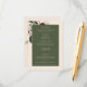 Introducing our enchanting winter wedding details enclosure card, where timeless elegance meets the beauty of the season. The rich ivory cream background, softly distressed with white accents, sets a captivating tone for your special day. In the dark sage green text area, your wedding details stand out, surrounded by a delicate cream frame that adds a touch of refinement. Embrace the spirit of winter with a breathtaking frame of lush greenery, featuring holly adorned with rich red berries, mistletoe with its delicate white berries, and the timeless allure of green pine. Created by Simply Farmhouse Press.