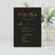 Cartão de Resposta de Casamento Minimalista Preto Moderno em Script Dourado Elegante. Celebre seu dia especial com este design de convite de casamento elegante e lindo para embelezar sua ocasião especial. Todos os textos estão pré-organizados para você personalizar fácil e rapidamente com seus próprios detalhes.