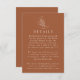 Melhore a sua suíte de casamento com este cartão de cercado de detalhes Elegante Moon e Stars. A design apresenta uma ilustração de uma linha de creme de uma lua crescente adornada com estrelas e folhagem botânica em um rico fundo de terracota. Personalize com detalhes importantes como acomodações de hotel, transporte, informações de recepção ou seu site de casamento. Uma carta versátil concebida para coordenar com a nossa coleção de casamentos Elegante da Lua Botânica e das Estrelas, perfeita para casamentos celestes e de vassouras.