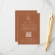 Preencha sua suíte de casamento celestial com este cartão de cerimônia de núpcias Elegante Moon e Stars Terracotta. A design apresenta uma ilustração de uma linha de creme de uma lua crescente adornada com estrelas e folhagem botânica num fundo terraota quente. Personalize com detalhes importantes como acomodações de hotel, transporte, informações de recepção ou seu site de casamento. Adicione seu site ao código QR para que os convidados possam RSVP ou acessar informações adicionais com facilidade. Um cartão de cercado moderno e versátil projetado para coordenar com nossa coleção de casamento Elegante da Lua Botânica e Estrelas.