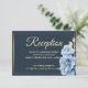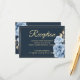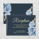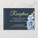 Cartão De Informações Elegante Recepção de Casamento Azul meia-noite flo