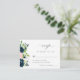 Elegante cartão de resposta de casamento floral minimalista simples com um lindo buquê de flores azul-marinho escuro e rosa pastel com folhagem verde e uma caligrafia elegante e moderna. ++++++++++++ Fácil de personalizar com seus detalhes! Adequado para casamentos com tema rústico boêmio moderno e elegante ao ar livre com jardim botânico. +++++++++++++++ Se precisar de ajuda para personalizá-lo, entre em contato comigo por e-mail: designer@sunflowersandcheers.com