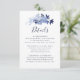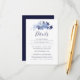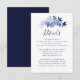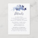 Cartão de Enclosure de Elegantes Detalhes de Casamento em Azul Naval com Folhagem Floral e Letra Moderna.