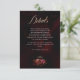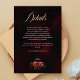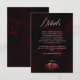 Forneça aos seus convidados informações importantes sobre a celebração usando este elegante cartão de detalhes de casamento floral sombrio vermelho e preto. Ricas flores vermelhas combinadas com folhagem botânica escura e dramática criam um design romântico e sofisticado que complementa perfeitamente um tema de casamento sombrio. A paleta de cores profundas e o arranjo floral refinado dão a este cartão um sentimento luxuoso e atemporal, tornando-o ideal para celebrações formais noturnas, casamentos de outono ou inverno e romance inspirado em gótico. Este cartão de inclusão elegante apresenta lindamente os detalhes do local, informações de horário e notas especiais, ao mesmo tempo em que se coordena perfeitamente com o seu conjunto de papelaria de casamento elegante.
