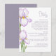 Enclosure Card Details for Weddings features a refined, minimalist style. Delicate irises in soft lilac shades are depicted against a pastel background, creating an atmosphere of sophistication and tranquility. The design is modern, airy, and perfect for a stylish, romantic wedding.