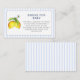 Cute hand painted watercolor lemons with preppy blue and white stripes Baby boy book request enclosure card for baby shower.