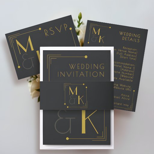 Cartão De Informações Estilo de Arte Deco 1920 Detalhes do Casamento Dou