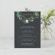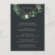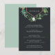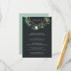 Projetado para coordenar com a nossa coleção de casamentos de Estufa, este elegante e impressionante cartão de informação botânica para convidados apresenta uma decoração superior de folhagem de aquarela verde, folhas botânicas e minúsculas flores brancas com acentos de folha de cobre. Este cartão de tamanho generoso permite que você compartilhe todos os seus principais detalhes de casamento, como acomodações de hotel, informações de recepção bem-vindas, site e muito mais, em letras brancas em um rico fundo fora do preto.