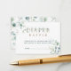 Esta placa de caixa de fralda apresenta cor d'água, eucalipto e folhas verdes pintadas com letras botânicas de ouro.