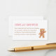 Cartão De Informações Exposição de Chuveiro de Bebê Menina Urso de Pelúc