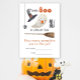 Apresentando uma aquarela fofinha de fantasma bebê e estética de Halloween. Um pouco de bu está quase a chegar! Chá de fraldas temático do Halloween com fantasma de aquarela, gato preto, chapéu de bruxa, esfregão mágico, aranha pendurada numa teia. O pequeno fantasma está comendo um pirulito.