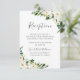 Avise seus hóspedes sobre seus detalhes de recepção com nossos cartões de inserção de flores brancas e recepções de casamento verdes. O texto é completamente personalizável - se você precisar alterar a fonte, a cor da fonte, o tamanho ou o posicionamento das caixas de texto, basta clicar no botão "Clique para personalizar mais" para alterar esses itens. Certifique-se de verificar nossa grande seleção de itens coordenadores navegando na coleção de Casamento Floral Branco Moderno!