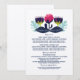Cartão de Informações de Casamento Florais Funky moderno e elegante com um colorido arranjo de folhagens azul-escuras e pervinca e flores rosa magenta e roxas estilizadas. Este cartão de informações exclusivo e sofisticado pode ser personalizado com os detalhes do seu casamento. Para mais opções de personalização, clique no botão Personalizar.