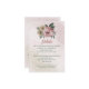 Cartão de inclusão de casamento único com flores rosa e champanhe românticas e folhas verdes.