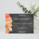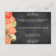 O design floral abstrato em cascata torna esse cartão de resposta de casamento de quadro-negro especialmente perfeito para um casamento de outono, mas também é lindo para casamentos de primavera e verão. Qualquer noiva e noivo que apreciem a beleza natural das flores vão amar esse conjunto de casamento. Rosas abstratas em tons sutis de pêssego, laranja, vermelho, marrom e verde se complementam lindamente nesse cartão de recepção de casamento de quadro-negro. Fazendo um casamento no jardim? Esse cartão de casamento moderno e chique a um preço razoável é perfeito para você. Você pode personalizar facilmente esse conjunto de casamento da moda usando o modelo fornecido ou personalizar as cores da fonte clicando em "personalizar" e selecionando as caixas de texto para alterar as fontes e cores.