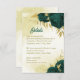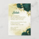 Cartão de detalhes de casamento lindo com flores esmeralda verde e folhas douradas.