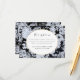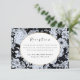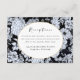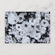 Arte original de um design floral preto e branco de margaridas, cravos, pânico e rosas. Cartão de informação sobre recepções de casamento elegante e moderno.