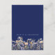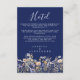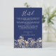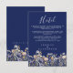 Este cartão de inclusão de hotel de casamento elegante e azul empoeirado com flores silvestres em azul naval apresenta flores silvestres em aquarela em azul empoeirado, roxo e amarelo em um fundo azul naval, com tipografia moderna e caligrafia em branco. É totalmente personalizável com os nomes do casal e detalhes do hotel. O design formal e a redação irão adicionar um toque de elegância à sua celebração de casamento.