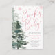 Na moda Winter girl chá de fraldas traz um cartão de pedido de livro. Design apresenta uma fonte moderna de escrita de caligrafia, flocos de neve rosa e árvores de floresta de aquarelas. FOLHA DE TINTA