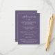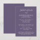 Este cartão de acompanhamento da agenda de eventos do fim de semana da ameixa de folha mínima é perfeito para um casamento boho. O design em tons de joia apresenta uma silhueta simples de folha de verde em um roxo azul escuro com estilo boho minimalista.