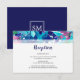 Este cartão de recepção de casamento apresenta um design de aquarela com flores e folhas em azul-marinho, aqua, roxo e rosa. Há um monograma no verso. Itens de papelaria de casamento combinando também estão disponíveis. Por favor, visite nossa loja ou visualize nossas páginas de coleção para ver a gama completa.