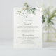Convites de casamento com eucalipto aquarela e folhas douradas.