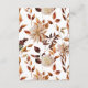 Cartão de Acompanhamento de Casamento de Folhas Rústicas de Outono. Eleve seu casamento de outono com este deslumbrante cartão de acompanhamento de detalhes na horizontal, apresentando rica arte em aquarela pintada à mão de folhas laranja queimada e terracota, dálias creme e bege suaves, e rosas radiantes em cobre e ferrugem. Contra um fundo branco com texto marrom, este cartão adiciona um toque de elegância sazonal, ao mesmo tempo em que apresenta perfeitamente os detalhes do seu evento. Certifique-se de que seus convidados tenham todas as informações necessárias — personalize seu cartão de acompanhamento agora.