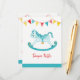 Cavalo de hobby de balanço pintado à mão com estrelas e bunting gráfico colorido, cartões de riachos de fralda. Perfeito para você pedir fraldas ou fraldas para que seu convidado possa ganhar prêmios em seu chá de fraldas. Aqua aqua bichinho de baloiço de cavalo aquoso pintura aquosa a aquarela e bunting gráfico em branco, vermelho e ouro amarelo. Arte original e design por Sarah Trett para www.mylittleeden.com no Zazzle.