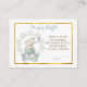 Elefante sentado em um tronco de árvore com pássaro em cores mudas de verde, azul e cogumelo com sotaque de ouro. Facilmente personalizado para fralda, solicitação de livro ou outro cartão ou inserção.