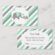 Cartão De Informações Fralda Raffle, Elefantes de Cinza Verde e Branco