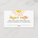 Bilhete de rifa de fralda com luz do sol e fonte retrô. Por favor, traga um pacote de fraldas de qualquer tamanho e você será inserido para ganhar um prêmio maravilhoso!