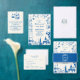 Cartão De Informações French Blue Whimsical Hand Drawn Ribbon Wedding