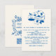 Cartão De Informações French Blue Whimsical Ribbon Crest Wedding