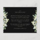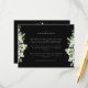 Um cartão de encerramento preto para recepção de casamento com uma borda de snowberries pintadas à mão e eucalipto na frente e uma coroa na parte de trás do cartão. Todo o texto é totalmente editável e os pontos espalhados na frente e atrás podem ser excluídos antes de encomendar, se preferir. Este cartão está disponível com desenhos botânicos alternativos, em formato retrato e em cores diferentes. Por favor, visualize a Coleção na minha loja para ver todas as opções e itens coordenados.