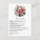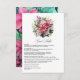 Adicione um toque de elegância ao seu casamento com este cartão de detalhes de hóspedes, maravilhosamente desenhado, com fuchsia vibrante e florais de cor d'água verde esmeralda. Ideal para casamentos de jardim ou primavera, este cartão fornece aos seus hóspedes informações essenciais sobre eventos enquanto mantém um tema romântico e botânico. O design floral exuberante complementará seu pacote de papelaria de casamento, garantindo que seus convidados sejam informados em estilo.