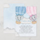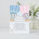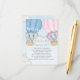 Este gênero baleado revela chás de fraldas Livros para o Cartão de Bebê apresenta um adorável bebê e elefantes meninas voando entre as nuvens em um balão azul e rosa de ar quente em um fundo azul de aquarela. Fácil de personalizar com opções personalizadas clicando no botão "Personalizar".