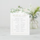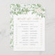 Quem conhece melhor a noiva? Um elegante jogo de chá de panela com ilustrações aquáticas folhagem, folhas e flores brancas com guião dourado. Um jogo fácil e divertido a ser adicionado ao seu chá de fraldas. Este cartão de jogo de chá de panela verde é perfeito para chás de panela primaveras. Itens correspondentes estão disponíveis.