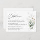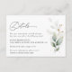 Preencha a suíte de papelaria de casamento com este cartão de detalhes de na moda. Design apresenta folhas de eucalipto e verde em fundo branco.