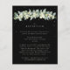 Um cartão de envelope fechado preto para recepções de casamento que são realizadas em um local diferente da cerimônia de casamento. O cartão apresenta uma elegante guirlanda de snowberries pintadas à mão e eucalipto na frente e uma coroa na parte de trás do cartão. Todo o texto é totalmente editável e os pontos espalhados na frente e atrás podem ser excluídos antes de encomendar, se preferir. Este cartão está disponível com desenhos botânicos alternativos, em formato paisagem e em cores diferentes. Por favor, visualize a Coleção na minha loja para ver todas as opções e itens coordenados.