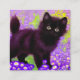 Cartões de gabinete com um gatinho preto Gustav Klimt! Esta beleza de olhos largos se coloca num campo verde de flores roxas. Um presente pensativo para amantes de gatos e entusiastas de arte austríacos!