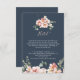 Este cartão de recinto de hotel floral de rosa de jardim de eucalipto é perfeito para um casamento rústico. O design apresenta flores de rosa cor-de-rosa, rosa-choque, amarelo com folhas de eucalipto em um fundo azul-marinho escuro.