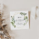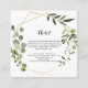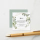 Este cartão de hotel para caligrafia verde-tropical de ouro geométrico é perfeito para um casamento moderno. A design apresenta lindas folhas verdes pintadas à mão, enfeitando um quadro geométrico dourado.