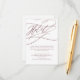 Este cartão romântico de hotel de caligrafia em ouro de rosa é perfeito para um casamento simples. O clássico design moderno apresenta espirais ricos e turbilhões caprichosos com lindíssima tipografia de folha de ouro rosa, com letras magníficas e elegantes. Nota: Este design não apresenta folha de ouro rosa real. É um gráfico de alta qualidade feito para se parecer com folha de ouro rosa.