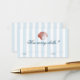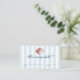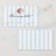This elegant, 'How many shells?' enclosure card features a vintage inspired, red drawn illustration of a seashell on a soft blue striped background.