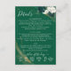 Compartilhe detalhes importantes do casamento com este cartão de acompanhamento de rosa verde esmeralda elegante. O sofisticado design floral de aquarela apresenta elementos botânicos suaves perfeitos para casamentos no jardim, celebrações em vinhedos ou cerimônias clássicas. Use para informações de recepção, direções, detalhes de acomodação ou informações de registro. Coordena-se perfeitamente com conjuntos de convites correspondentes para uma coleção de papelaria coesa.