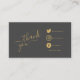 Logotipos sociais, código QR, cartão de agradecimento cinza e dourado para incluir nos pacotes dos seus clientes. Use o código QR para direcionar à sua loja ou dar um desconto ao cliente na próxima compra. O cartão apresenta links sociais em dourado. Se desejar alterar os ícones sociais ou precisar de ajuda com o código QR, entre em contato.