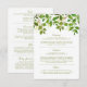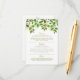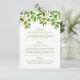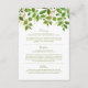 Cartão de informações de casamento em jardim selvagem com folhagem verde exuberante orgânica pintada em aquarela e um modelo de detalhes de casamento moderno.