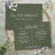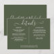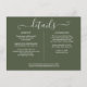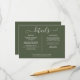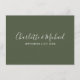 Um cartão de informações de detalhes de casamento elegante e personalizado com seus detalhes especiais em tipografia elegante e seus nomes e data de casamento no verso em um fundo verde oliva. Concebido por Thisisnotme