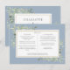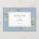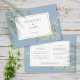 Um cartão de informações de detalhes de casamento em aquarela azul poeira e folhagem personalizado com seus detalhes especiais em tipografia elegante e seus nomes e data de casamento no verso. Projetado por Thisisnotme